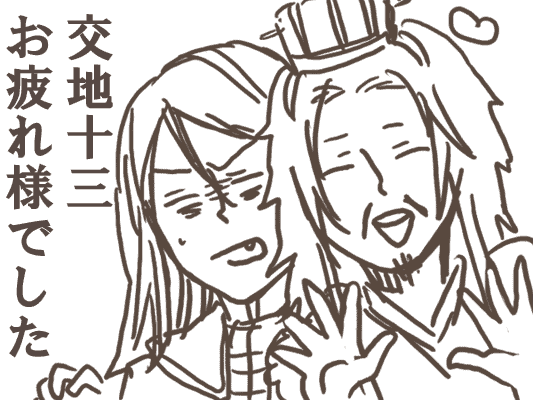 いや、久々の交地はやっぱいいですねー!諸司馬な会話もできて滾りました、イベント後は諸司馬の幸せについて本気出して考えてました。